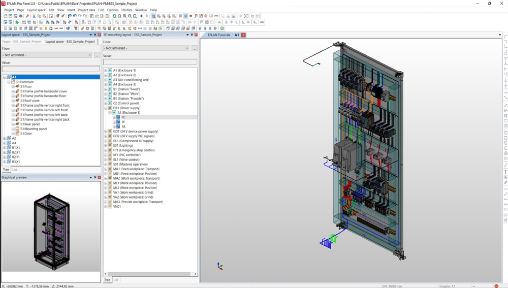 Met EPLAN Pro Panel kunnen ontwerpers met 3D beelden van hun besturingskast werken. Die men zelfs eenvoudig via de Rittal RiCS configurator kunnen samenstellen. Dat betekent, dat ze naast het eenvoudig configureren van de kast ook gemakkelijk de beste rangschikking van componenten kunnen bereiken vanuit het oogpunt van optimaal ruimtegebruik en gemak bij het bedraden. Waar dat van toepassing is, dwingt de software automatisch de minimale ruimte-reservering rond componenten af. Het programma controleert op mogelijk contact tussen deur- en kastgemonteerde onderdelen.